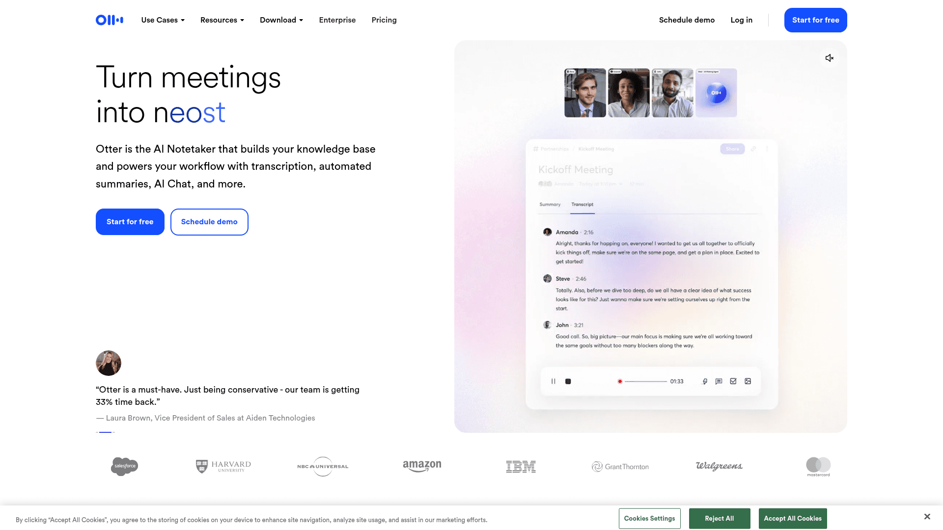 An AI meeting recorder that timestamps, transcribes, and summarizes video calls for teams.
