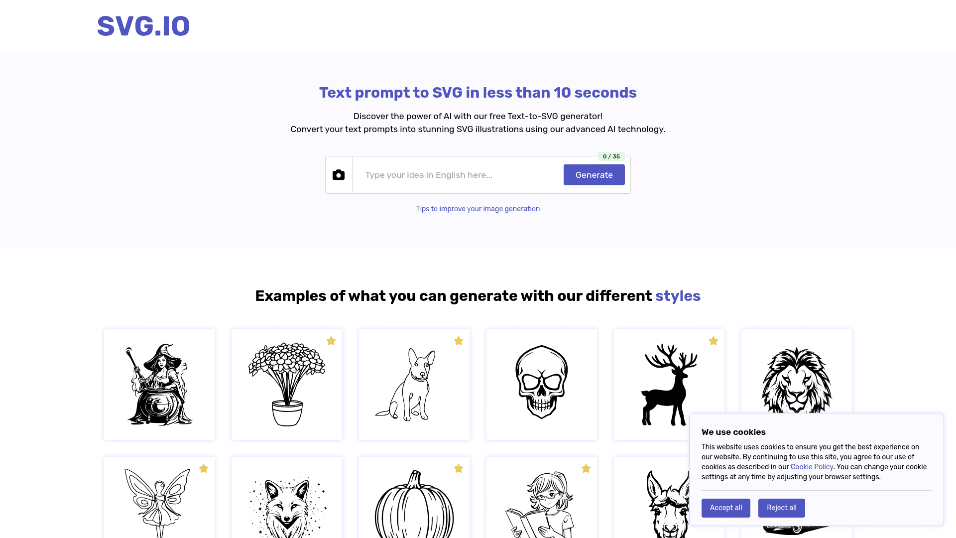 An AI-powered tool for generating SVG illustrations and vector graphics from text prompts.