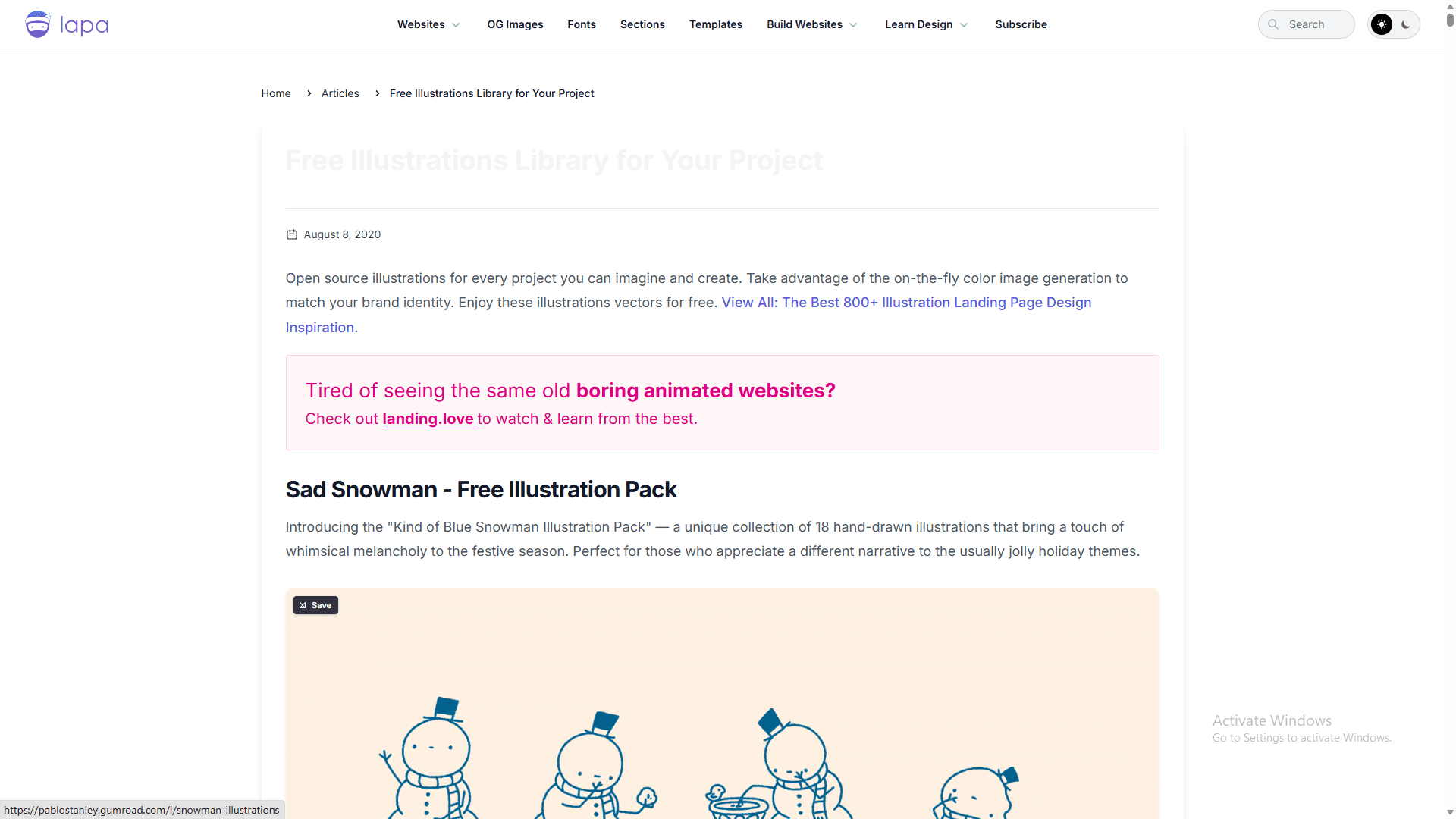 A curated collection of free illustration libraries handpicked by Lapa Ninja for designers.