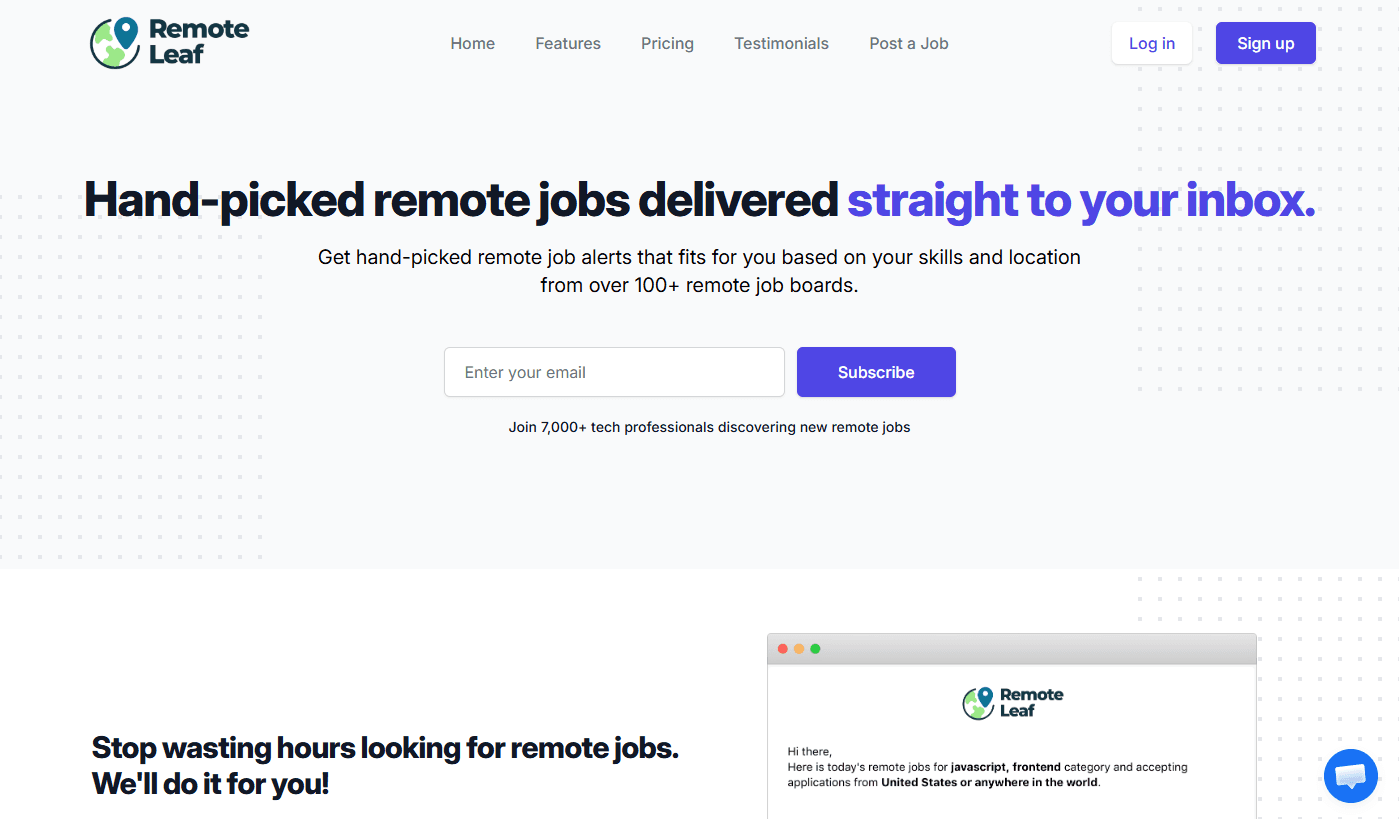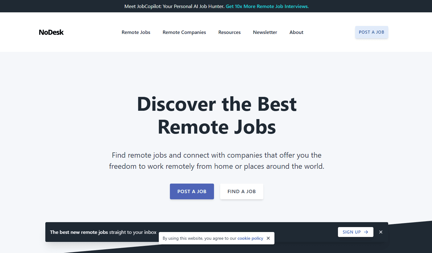 A remote job newsletter and board delivering curated listings for designers and developers weekly.