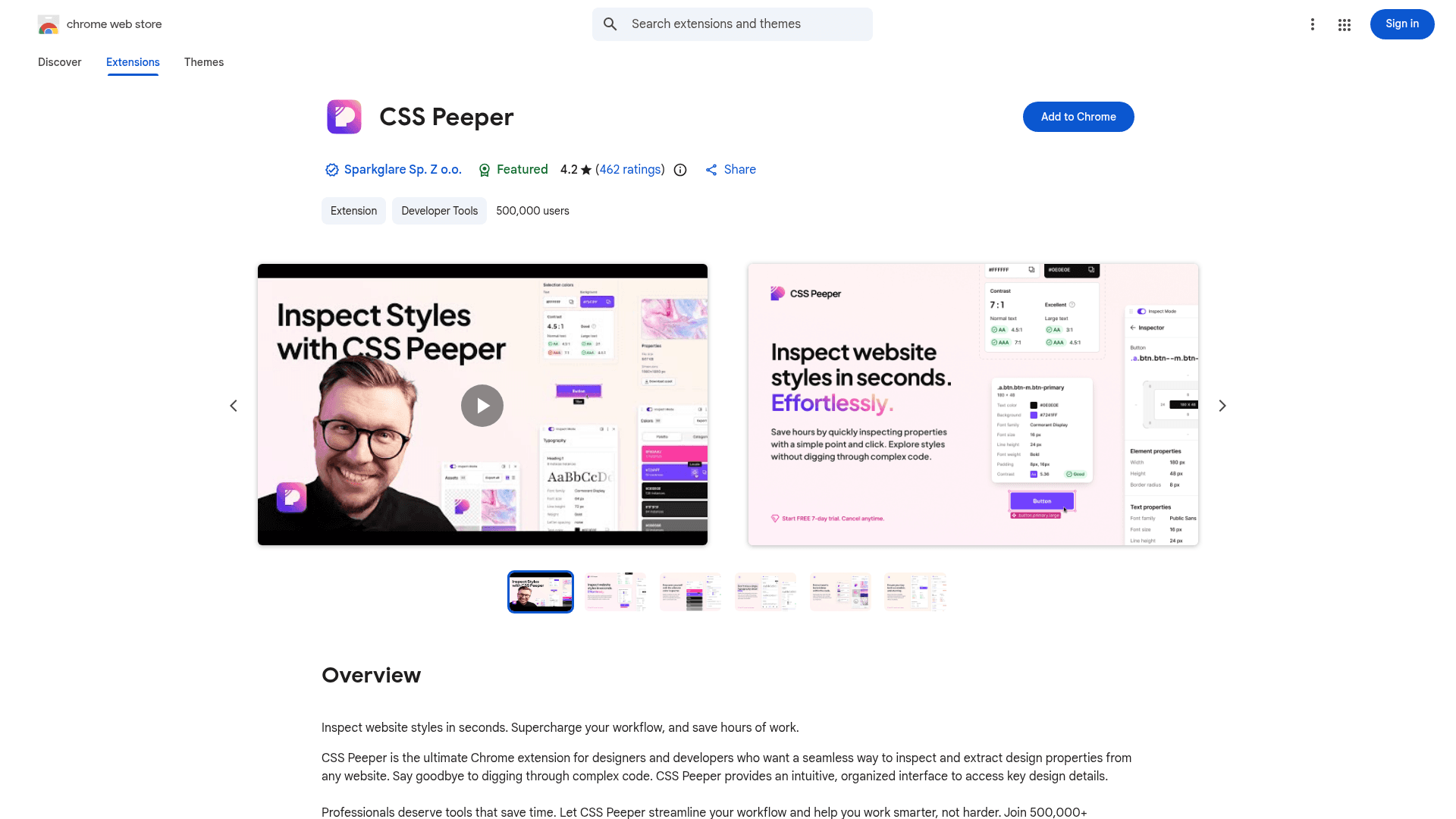 A Chrome extension (CSS Peeper) for inspecting and copying CSS styles from any webpage.