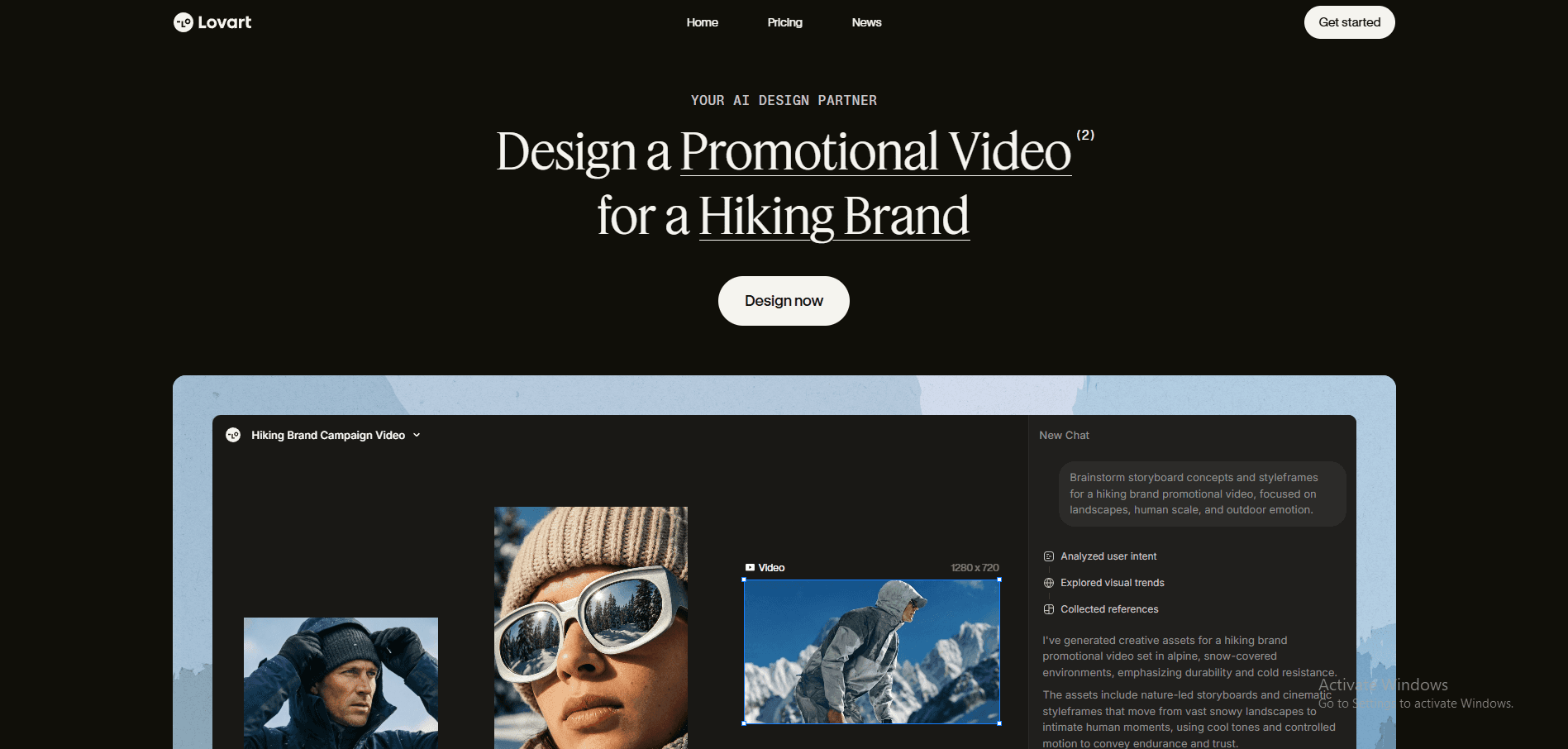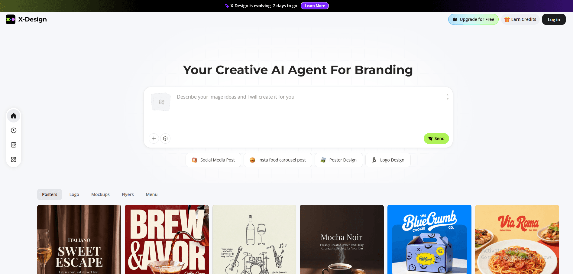 An AI-powered design workspace for generating UI designs, brand visuals, and creative assets.